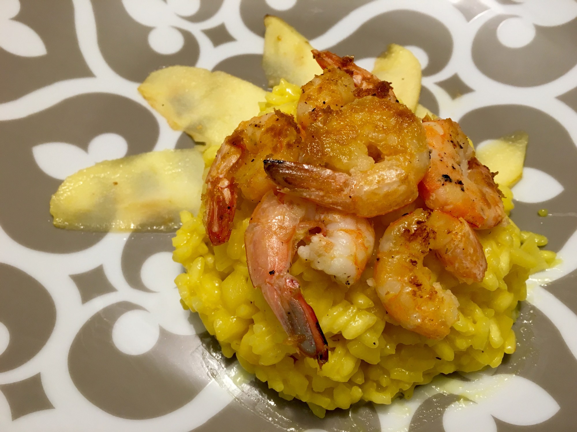Ecco come sdoganare il classico risotto alla milanese per renderlo delicato e quasi dolce con le mele ma allo stesso tempo gustoso grazie all’utilizzo delle cose di gambero.