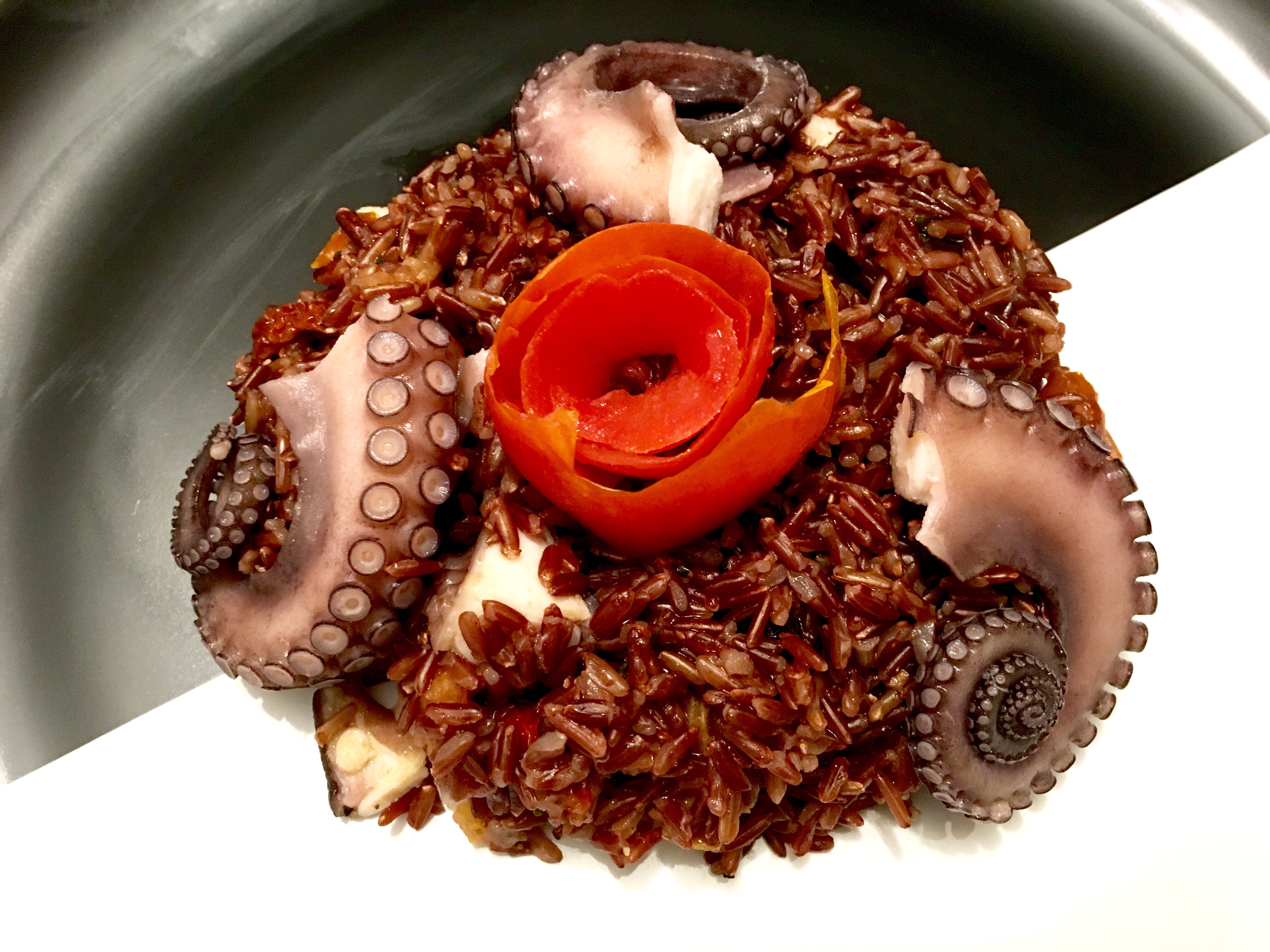 - Scolate anche il polpo e tagliate i tentacoli che userete per guarnire il piatto. Tagliate la testa e il ‘corpo’ a pezzetti che aggiungerete al riso.