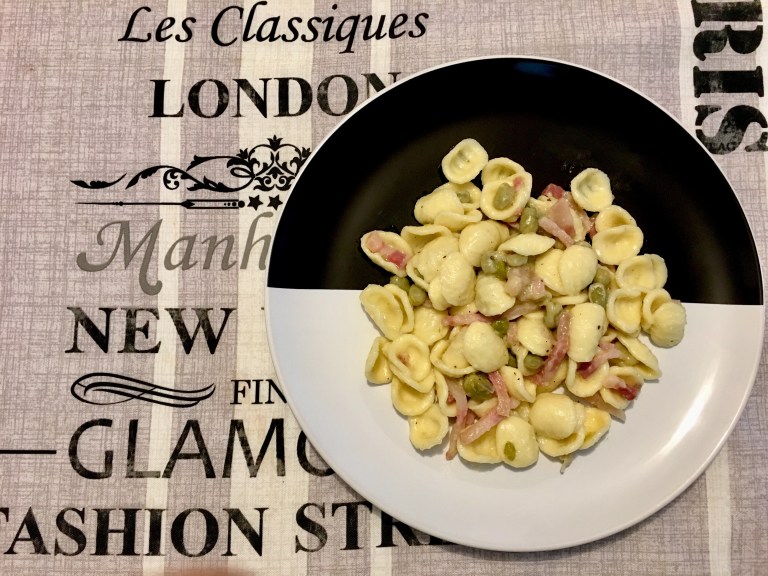 - Aggiungere il guanciale al soffritto e dopo pochi minuti anche le fave, che dovranno rosolare con il resto del condimento. Aggiungere un cucchiaio o due di acqua di cottura per evitare che il condimento asciughi mentre attendete la cottura delle orecchiette.