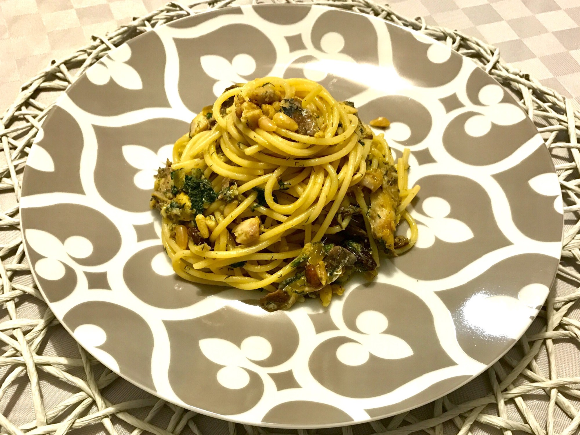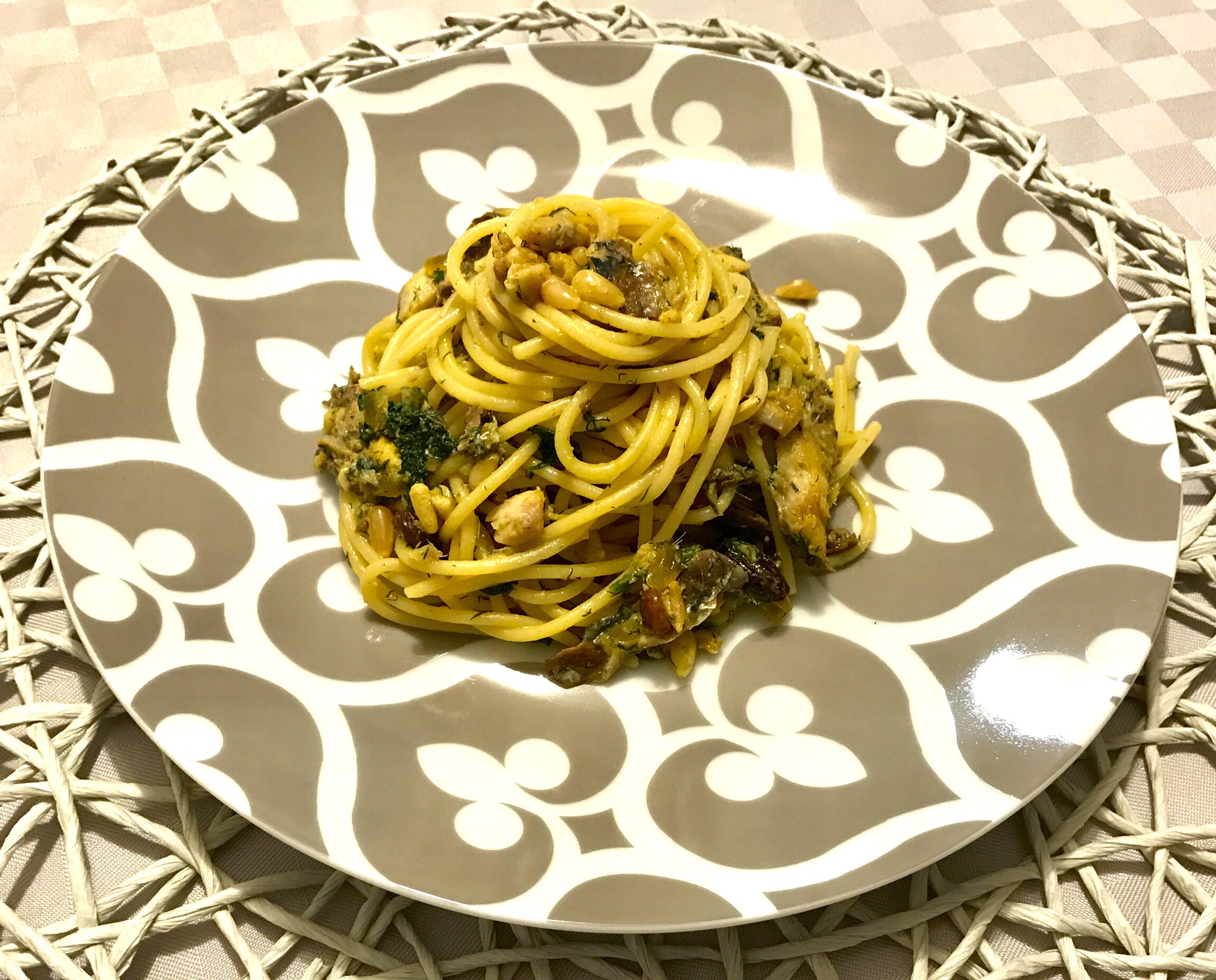 La pasta con le sarde è un piatto tipico della cucina siciliana. Il perfetto connubio tra sapori del mare e della terra, un piatto profumatissimo grazie al finocchietto e dal sapore agrodolce ottenuto grazie all’utilizzo di uvetta, pinoli e zafferano.