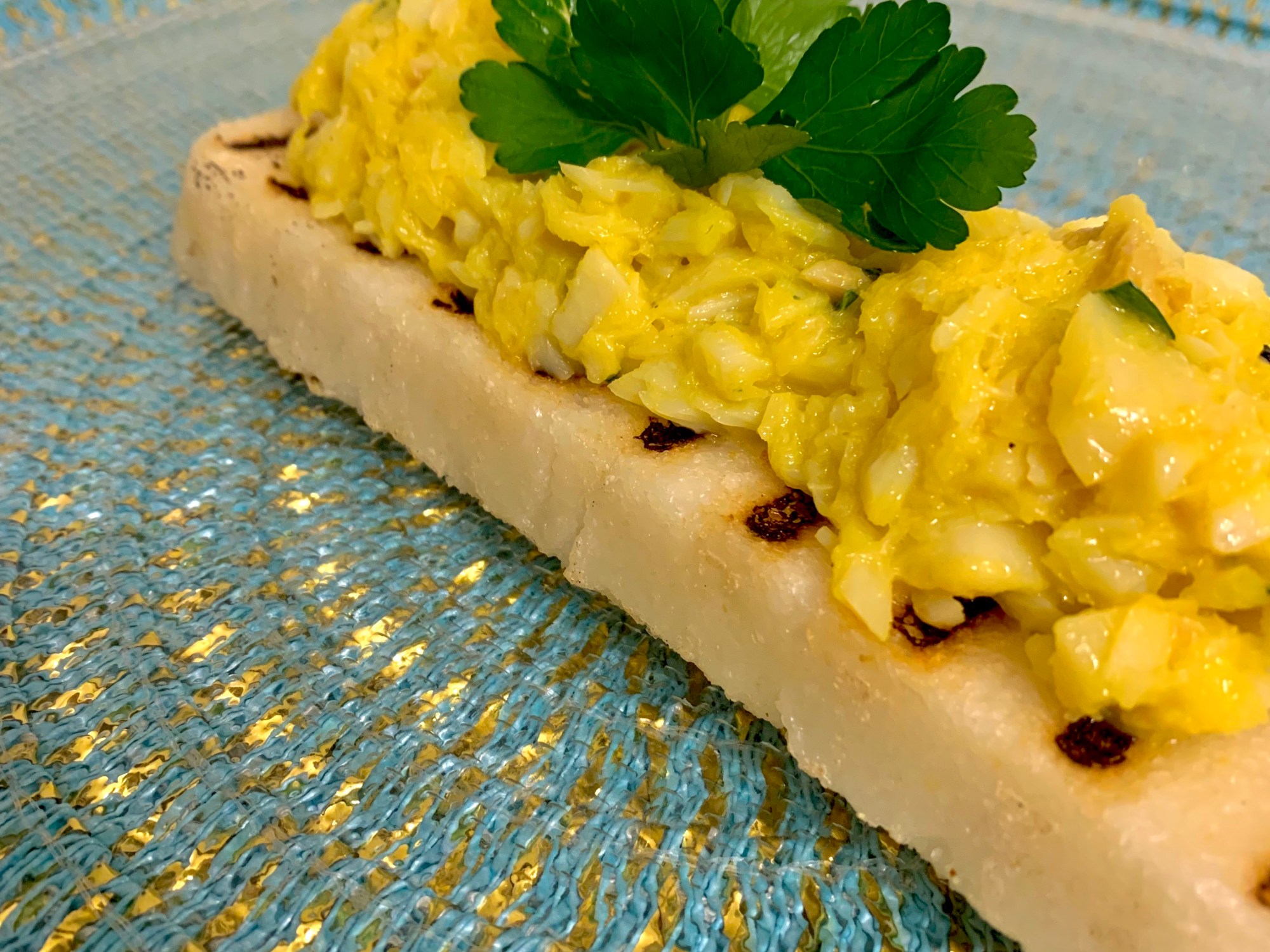 - Una volta cotto il baccalà scolarlo e metterlo in una ciotola, versarvi il latte con lo zafferano e aggiungere l’olio a filo mescolando energicamente per ottenere un composto omogeneo. Aggiungere il prezzemolo.