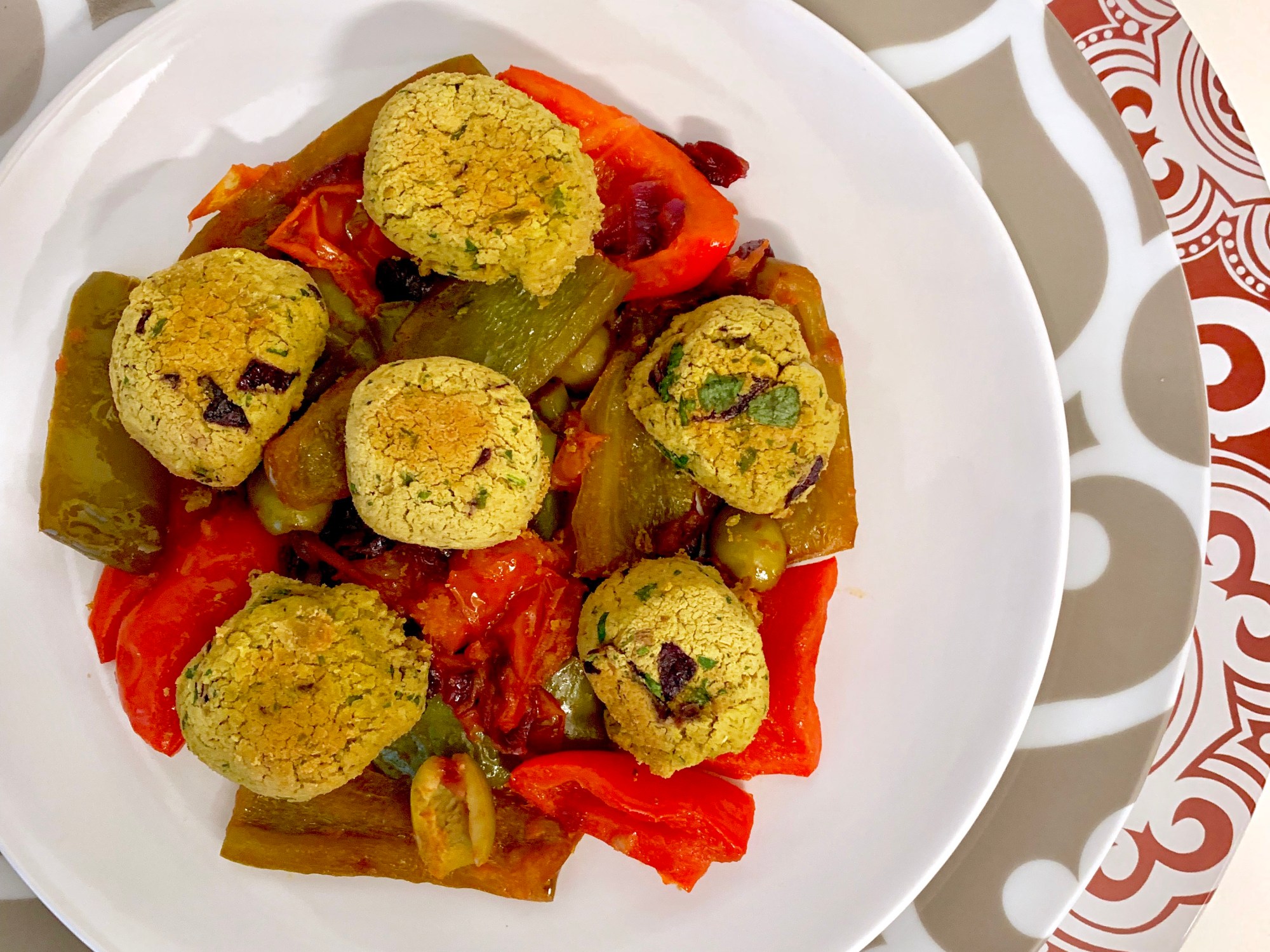 - Durante la cottura della peperonata scaldare il forno a 200 gradi e preparare i falafel creando delle polpettine delle dimensioni di una noce con le mani (ne usciranno una decina)