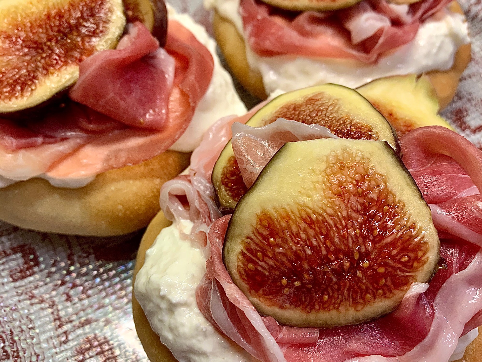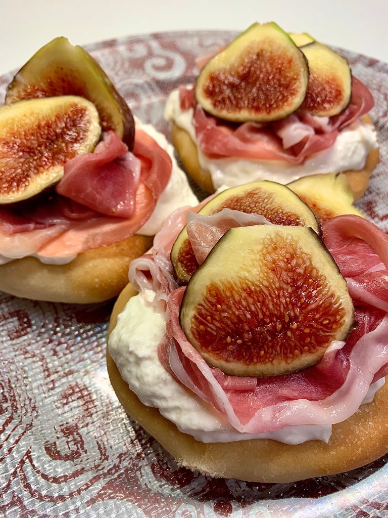 - Sfornate le focaccine e farcitele! Spalmata su ciascuna un cucchiaio di stracciatella, mettete due fettine di crudo e 2/3 fettine di fichi.
