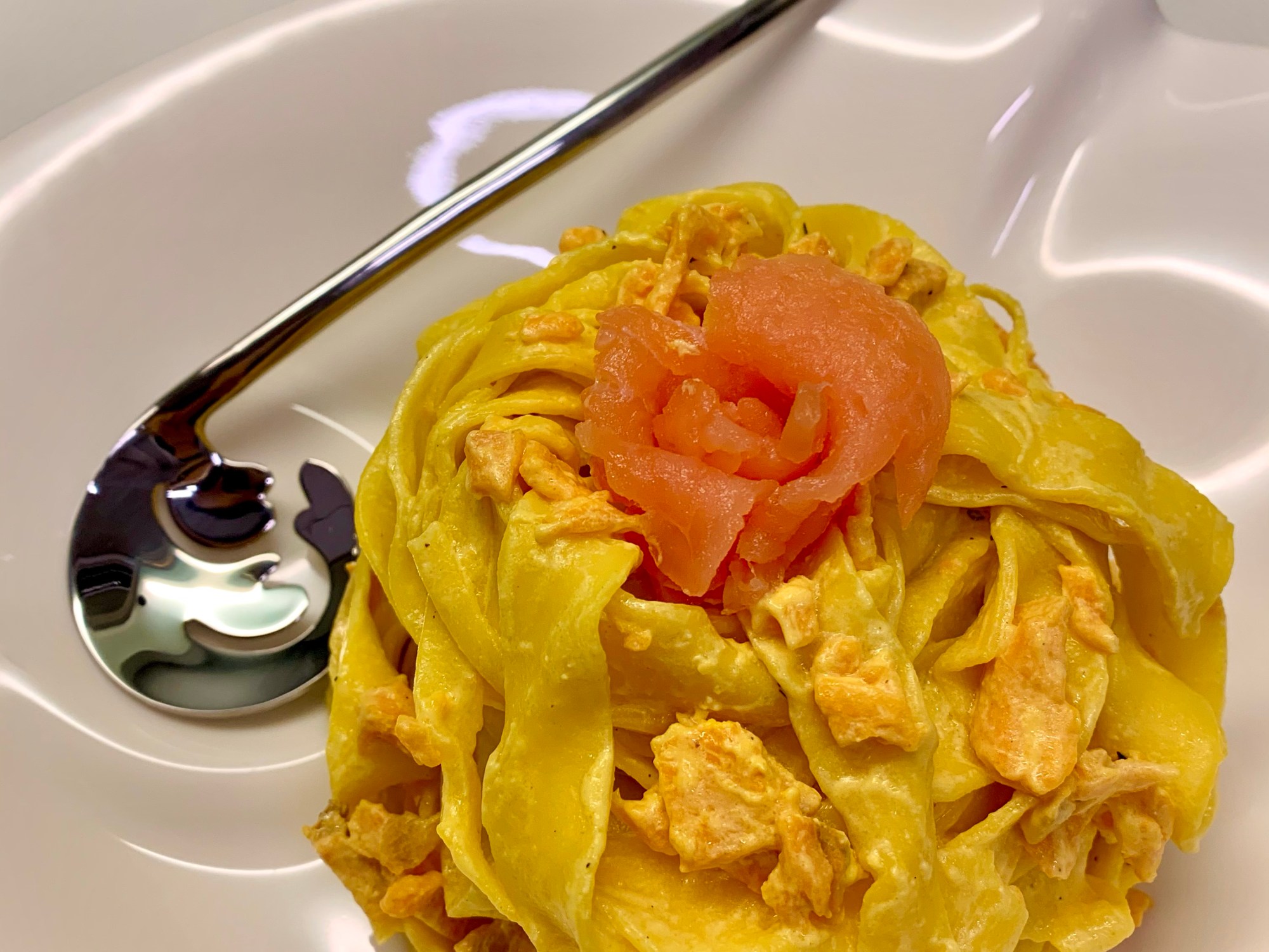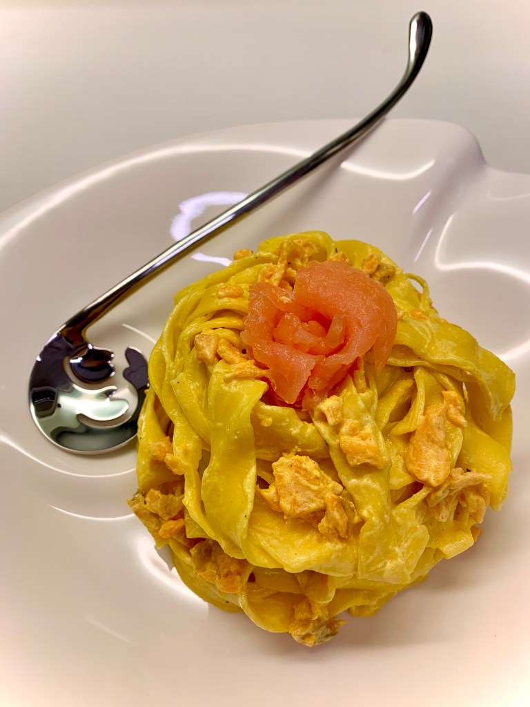 Vi propongo un abbinamento molto tradizionale: panna e salmone affumicato ma con l’aggiunta di zafferano!