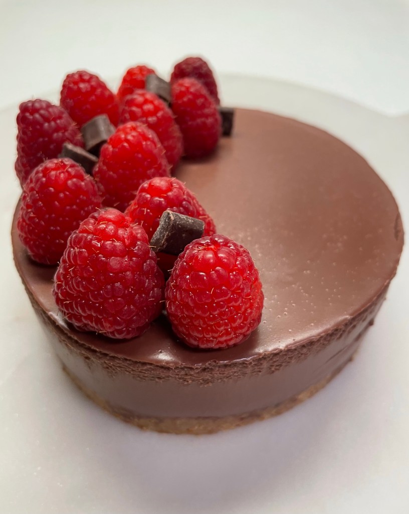 - Decorate con i lamponi e le pepite di cioccolato.