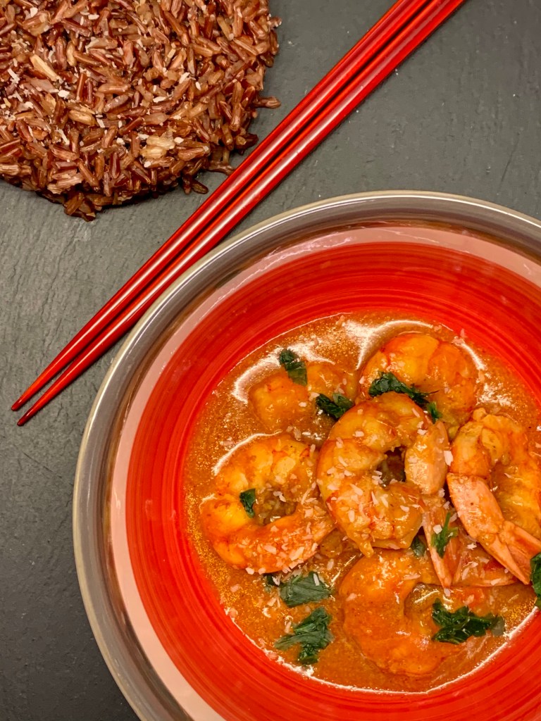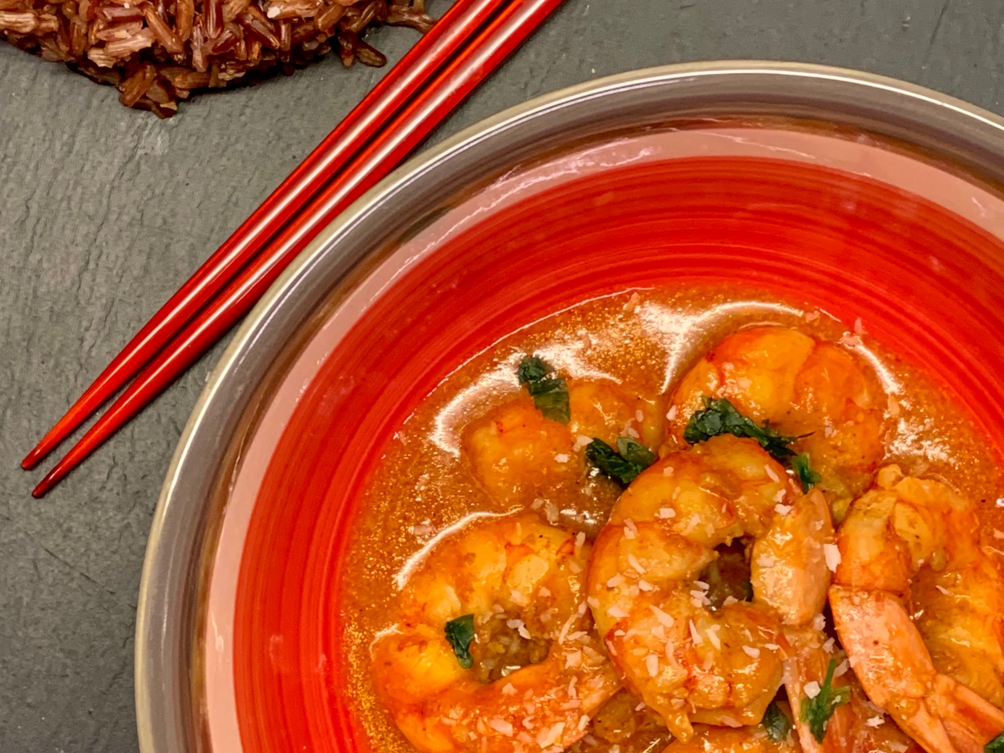 - Servite i gamberi con la loro salsa in una ciotola, spolverate con il prezzemolo fresco tritato e il cocco rimasto, accompagnando il tutto con il riso a parte!