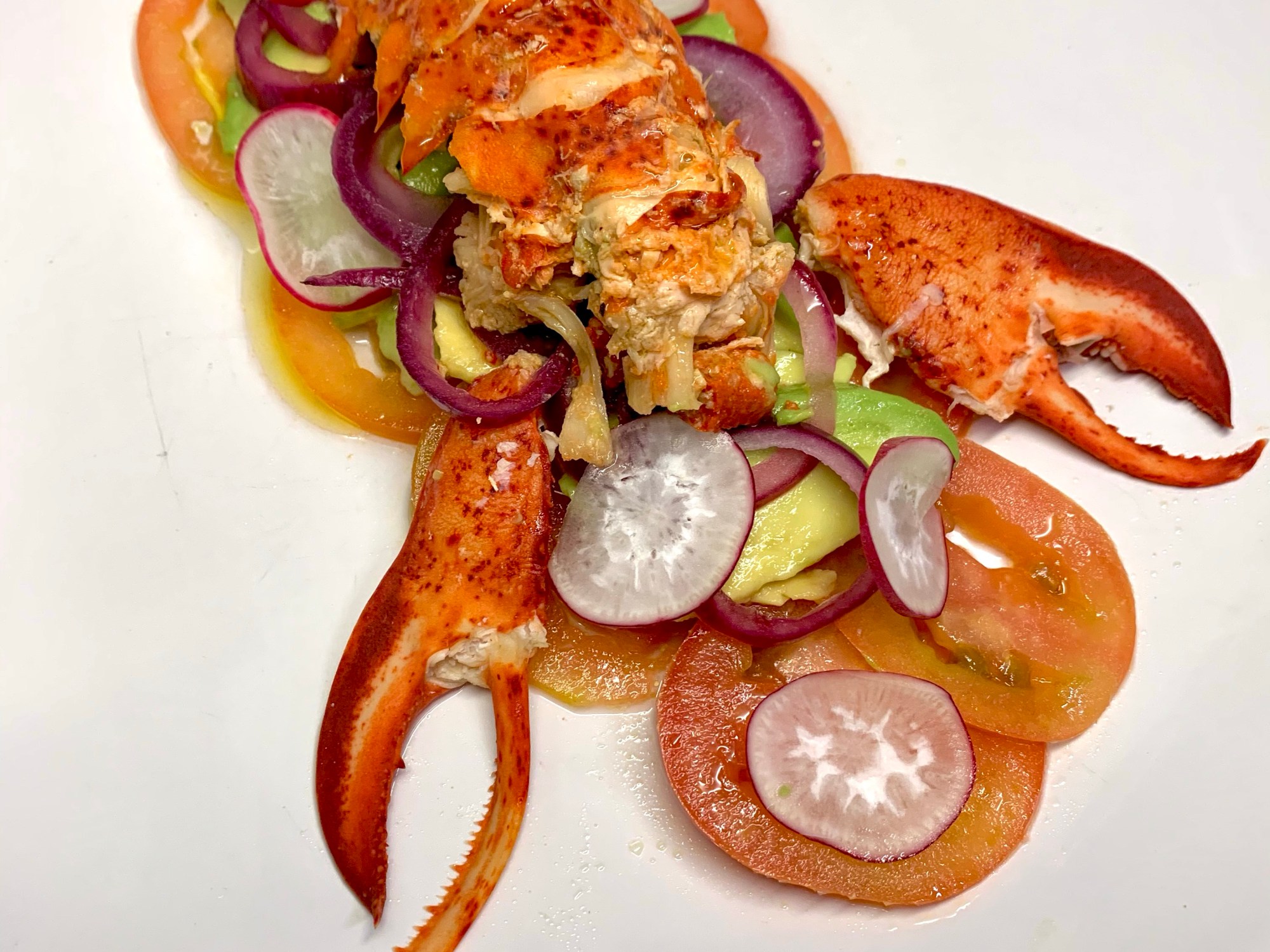 - Adagiate sul piatto tutte le verdure per creare un letto dove appoggiare l’astice e condite il tutto con la citronette!