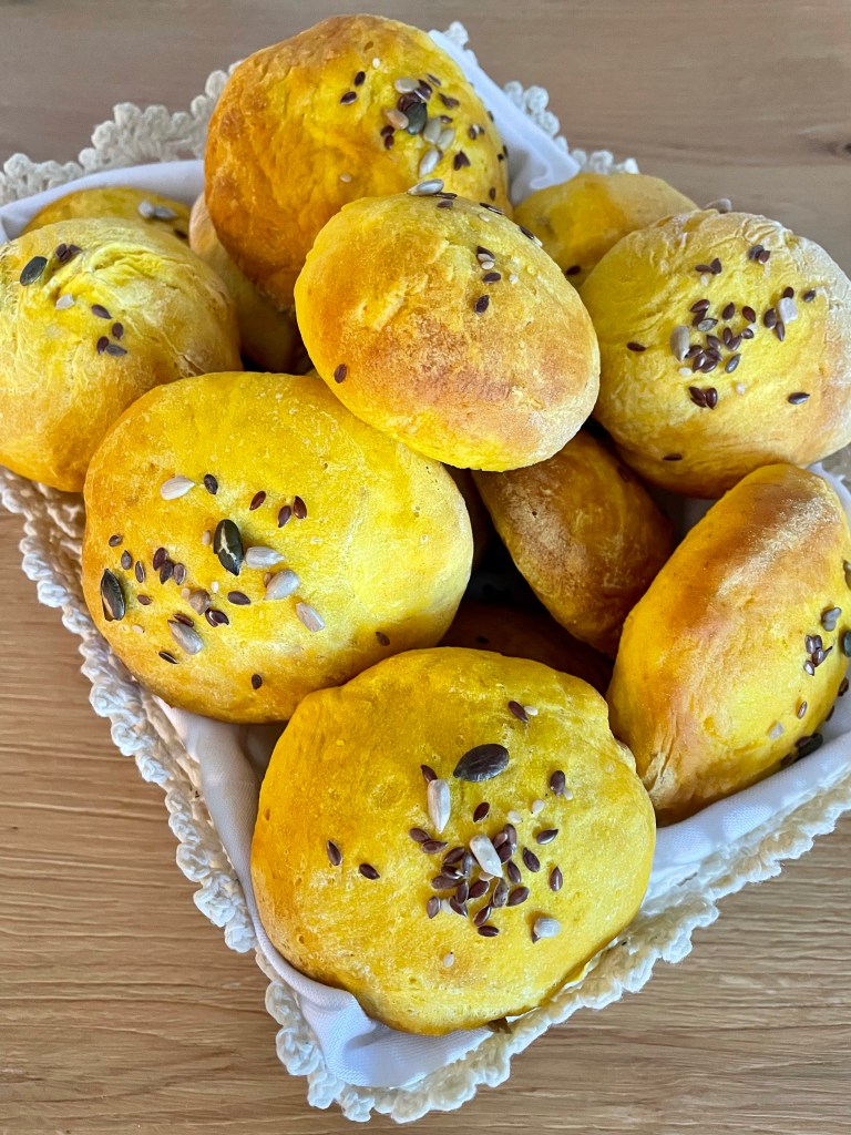 Grazie alla passione di mio papà in autunno/inverno ho tantissima zucca a disposizione e quest’anno ho provato a farci dei panini! Dopo un paio di tentativi per perfezionarli ecco la ricetta collaudata 🙂