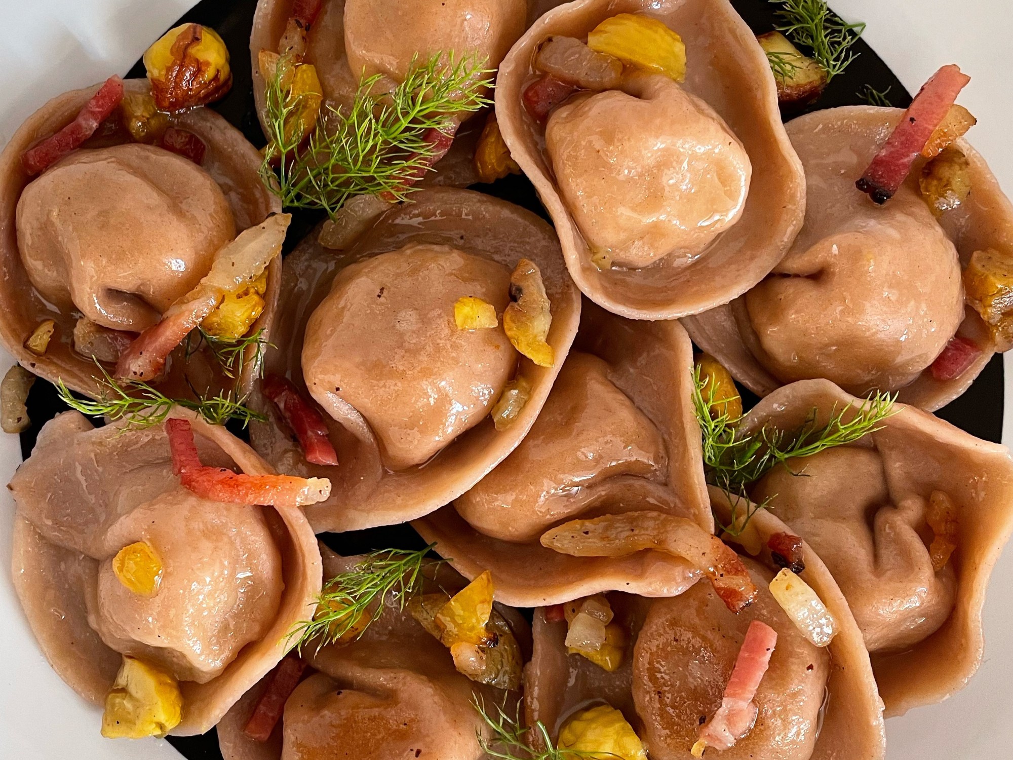 - Una volta cotti tutti i ravioli, spadellateli giusto un minuto nel saltapasta per amalgamarli al condimento e servite con il finocchietto fresco!