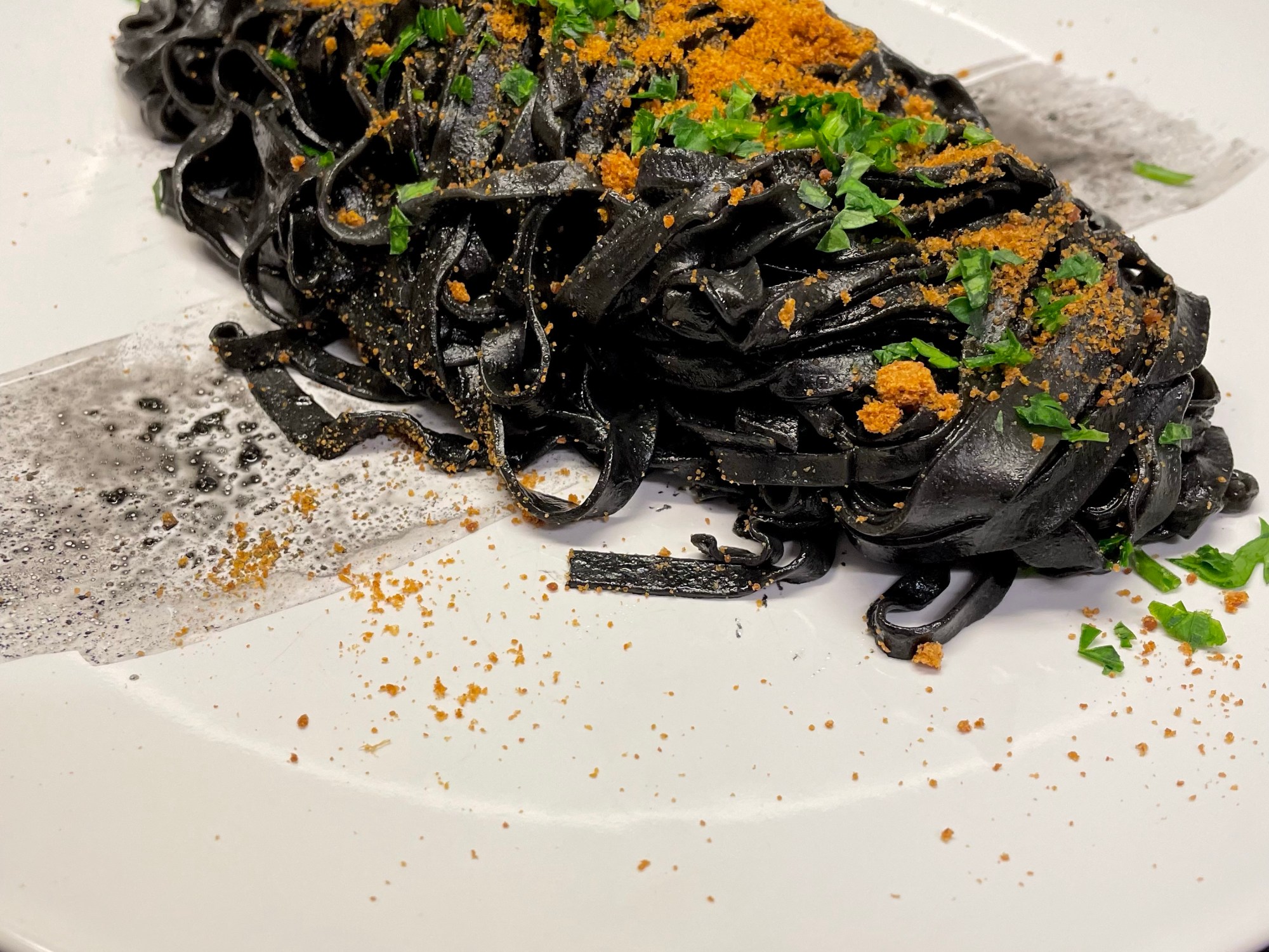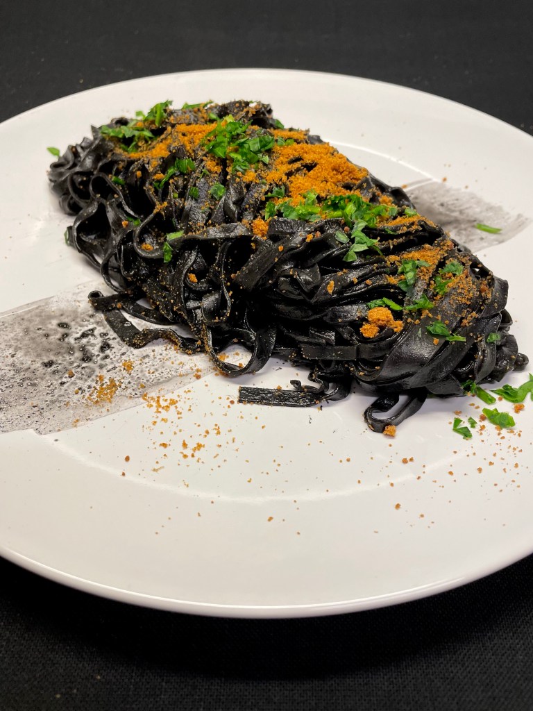 Solitamente la preparo con gli spaghetti ma questa volta ho voluto intensificare il sapore di pesce e impastare dei tagliolini al nero di seppia.