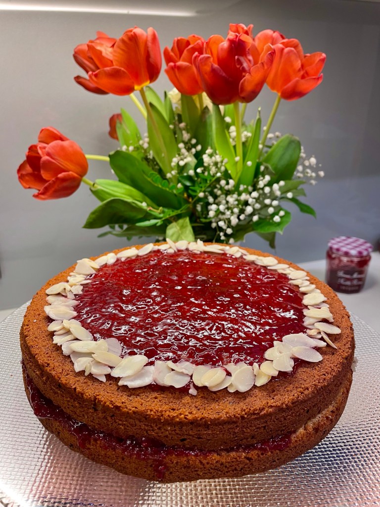 - Coprite con il disco superiore e spalmatelo con un velo della confettura rimasta, decorate con le mandorle.
