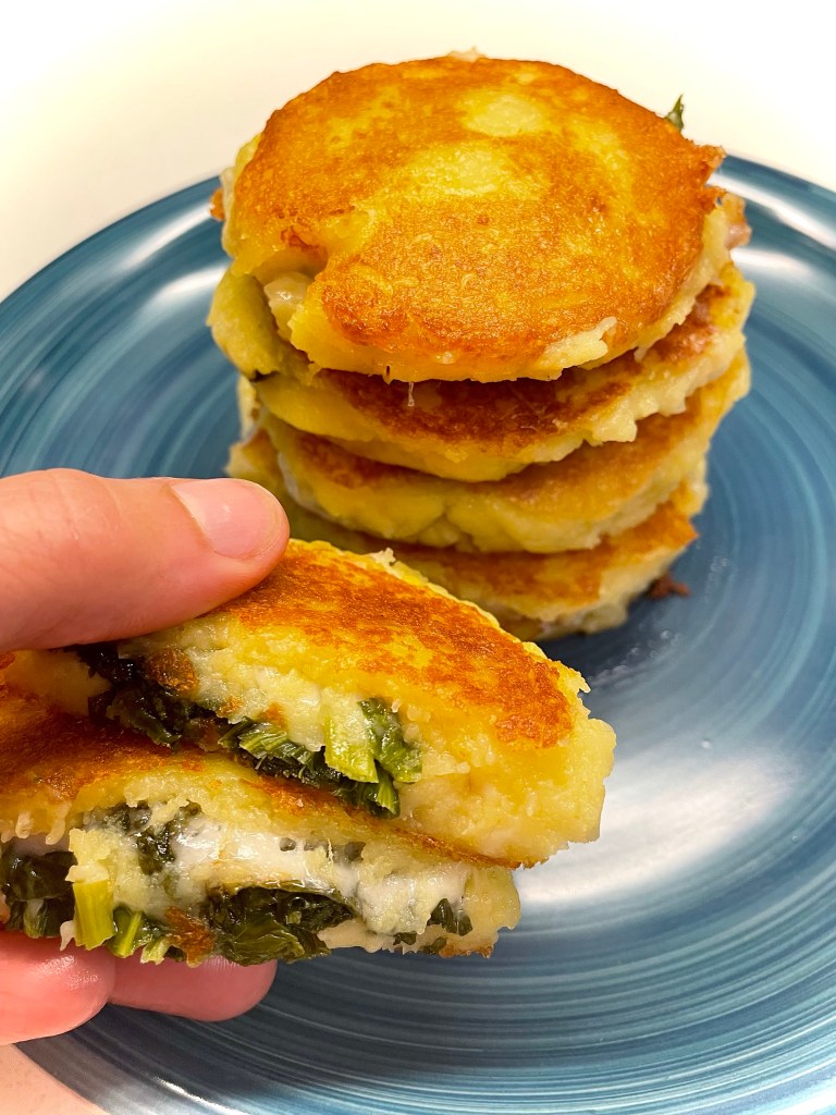 Ma quanto sono buone le cime di rapa? A me piacciono tantissimo, soprattutto come condimento per pizze o focacce! In questa ricetta le ho utilizzate come ripieno per delle focaccine di patate morbide ma con una crosticina super croccante, cotte in padella.
