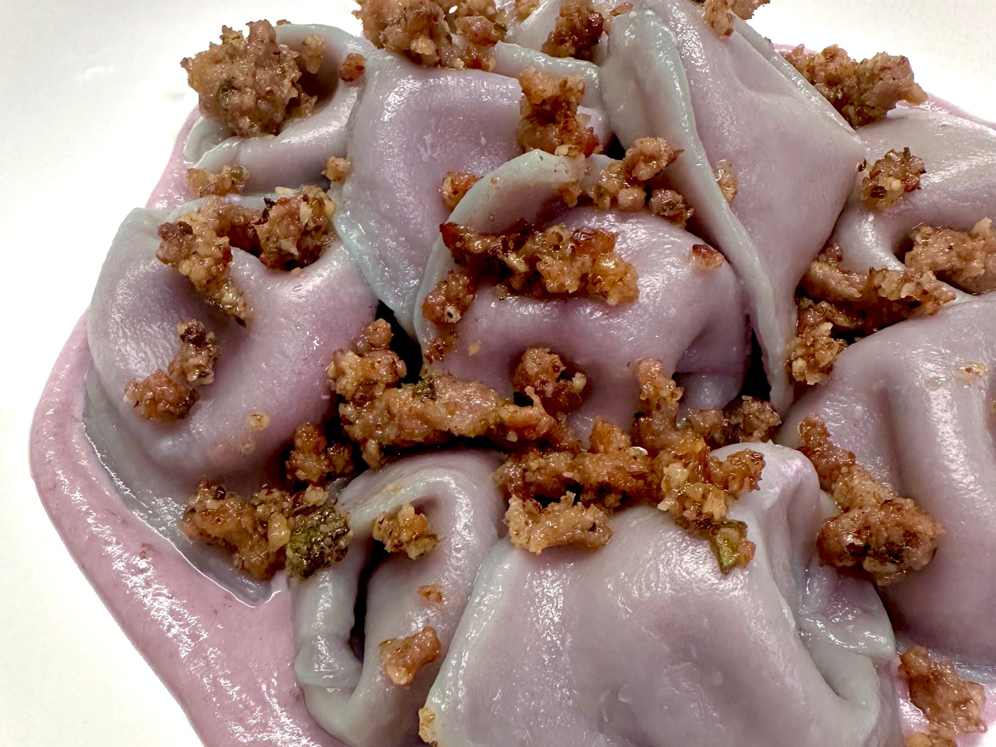 I ravioli viola (o meglio, lilla) non potevano mancare su questo blog e per prepararli ho usato semplicemente l’acqua di cottura del cavolo cappuccio.