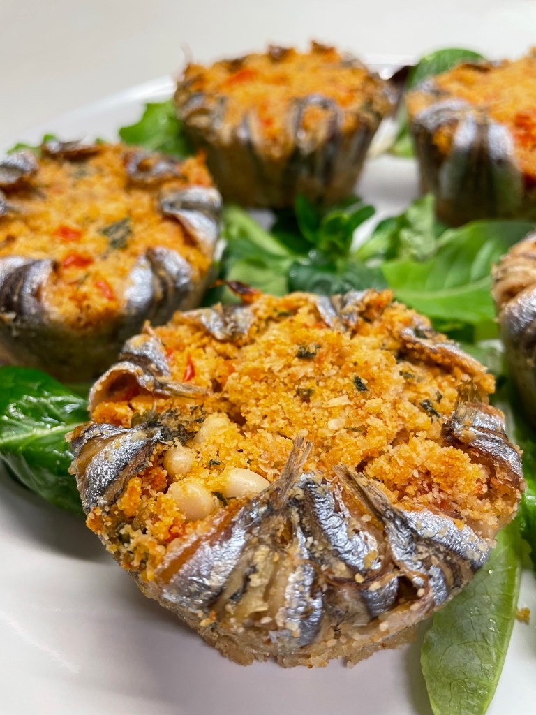 Le alici mi piacciono cucinate in ogni modo: crude e marinate, con la pasta, alla beccafico, gratinate. Quando le trovo fresche le compro sempre e questa volta ci ho preparato dei tortini al forno con un ripieno molto semplice.