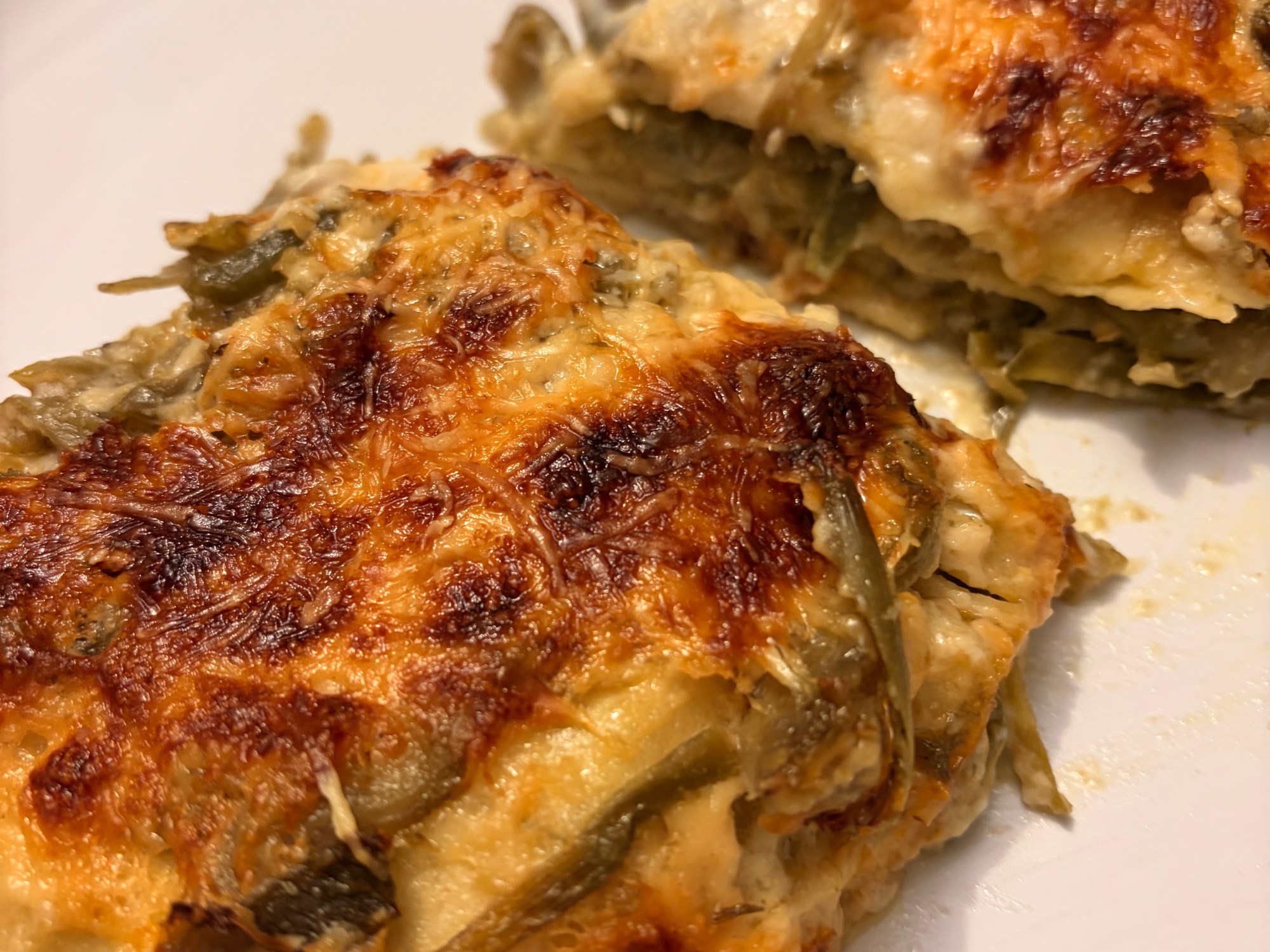 - Continuate con gli strati successivi: pasta-besciamella-carciofi-pecorino regolandovi nelle porzioni da usare per ogni strato in base a quanti potete ottenerne con le dimensioni della pirofila scelta (3 o 4).