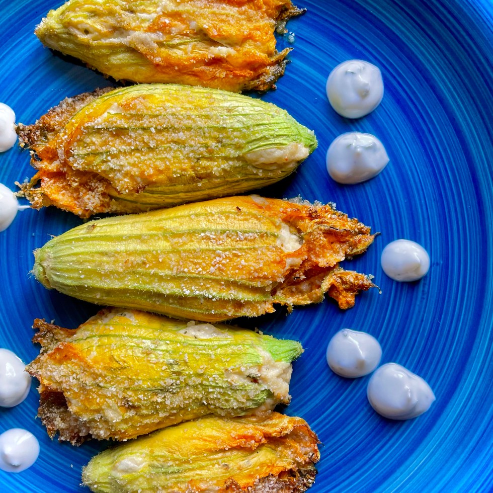 Fiori di Zucchina ripieni di Ricotta con Salsa Yogurt
