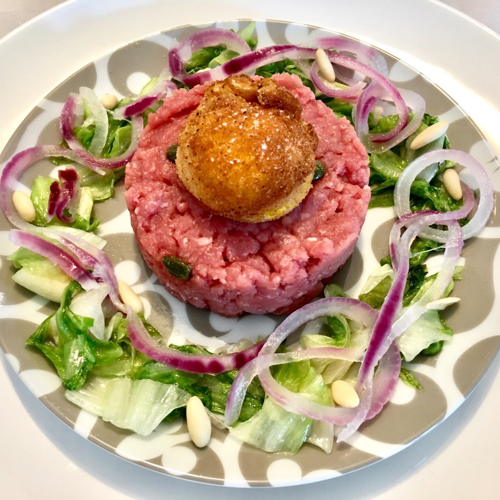 Filetto di maiale ai Datteri in crosta di prosciutto Crudo con Mele caramellate alla Cipolla