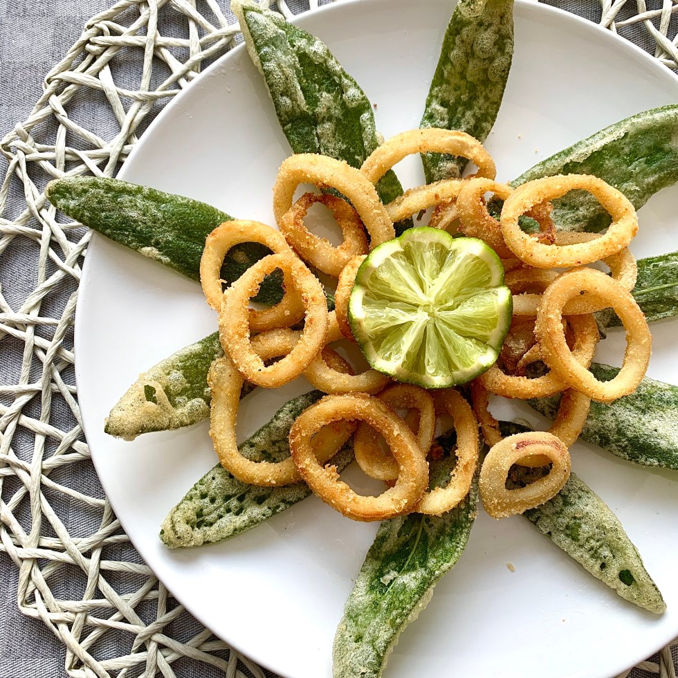 Anelli di Calamaro al forno con Salvia gigante fritta