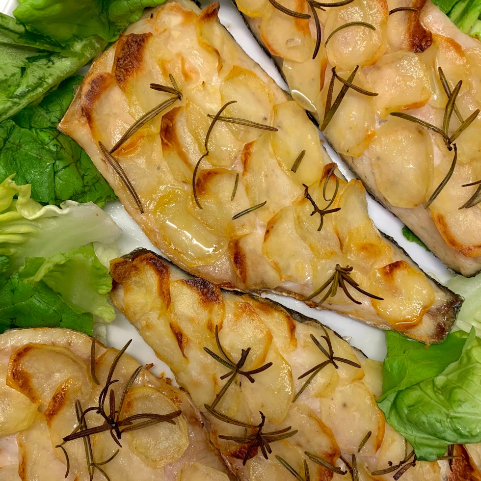 Filetti di Triglia in Salmoriglio alla Menta con Patate Viola