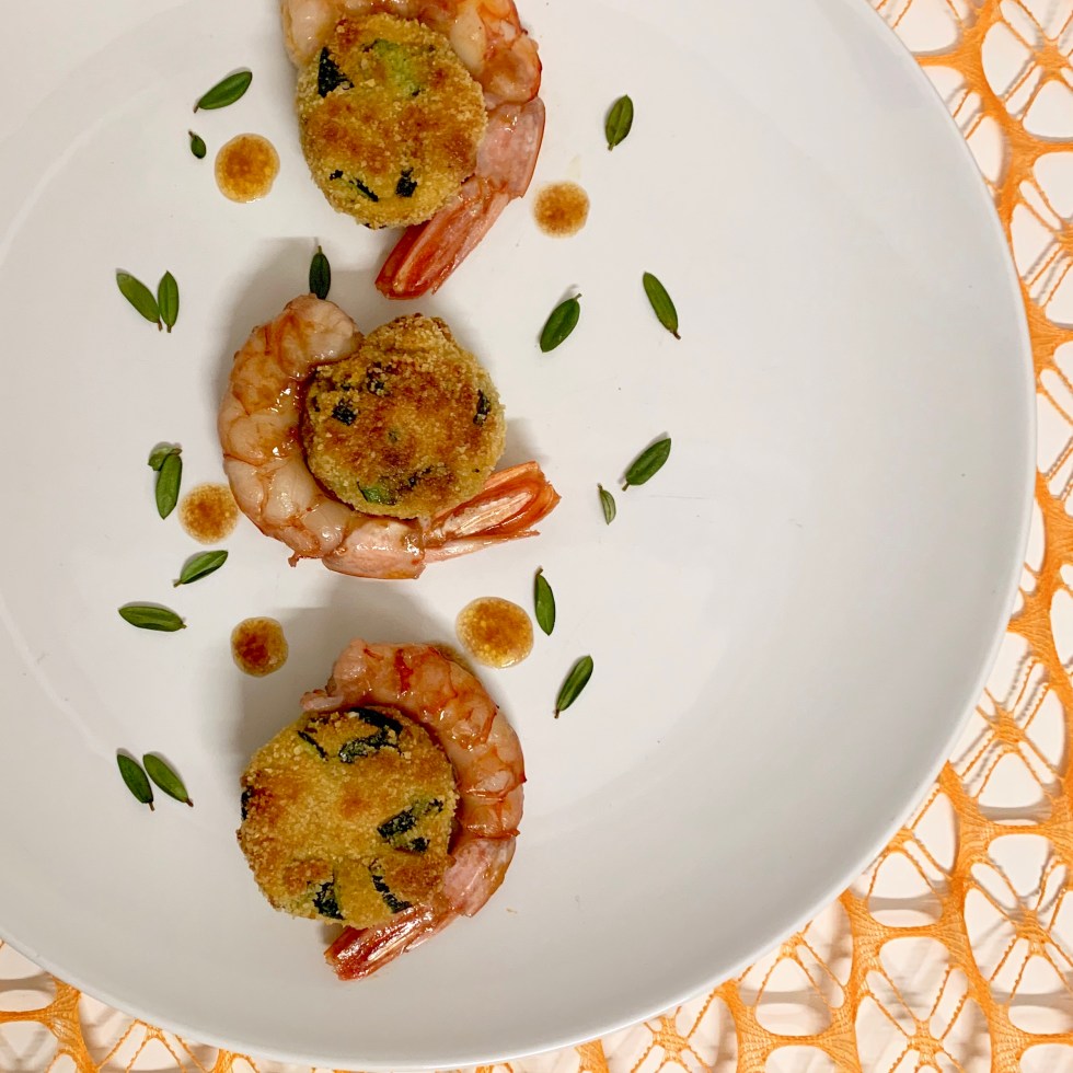Mazzancolle al Burro di Arancia e Mirto con polpette di Zucchine