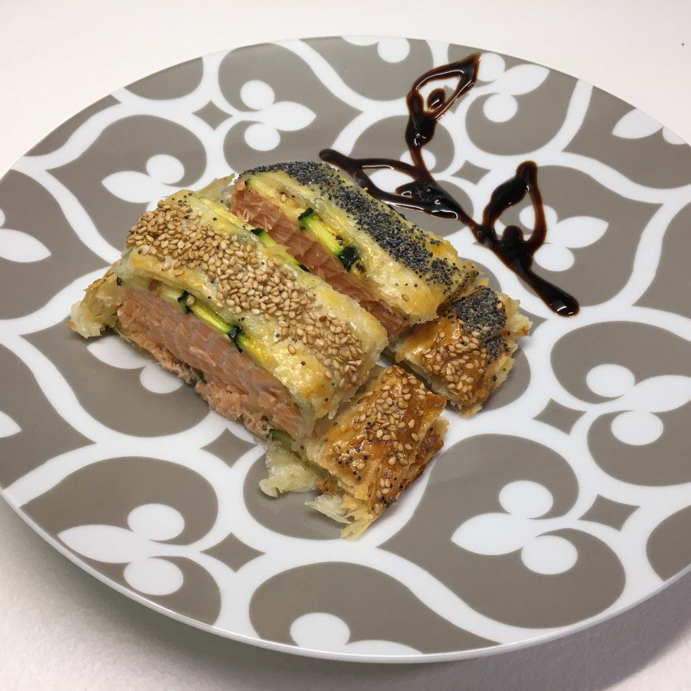 Filetto di Salmone in crosta di Zucchine e Pasta Sfoglia