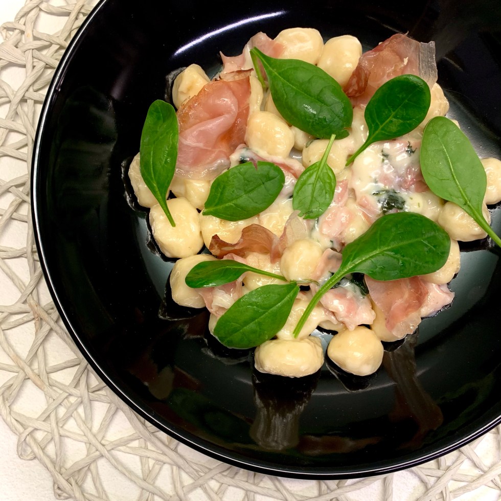 Gnocchi di Patate con Squaquerone, Speck e Spinacini