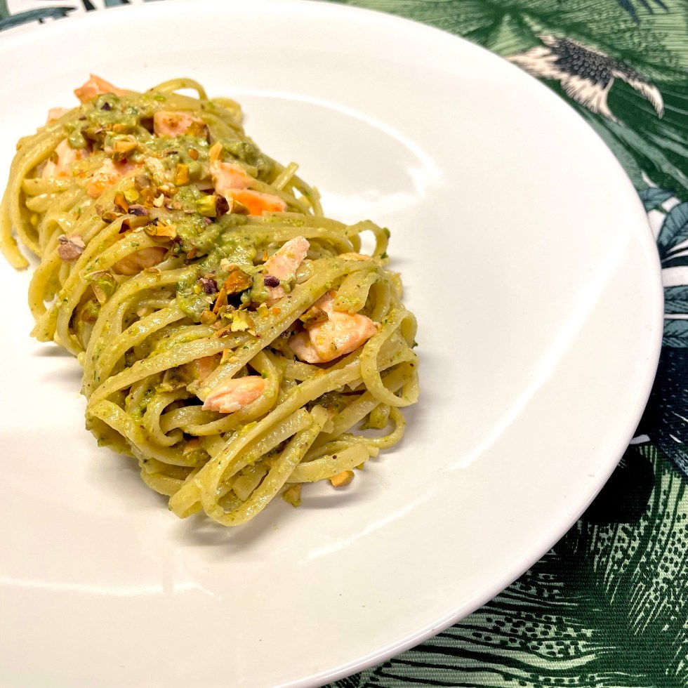 Linguine con Pesto di Pistacchi e Salmone