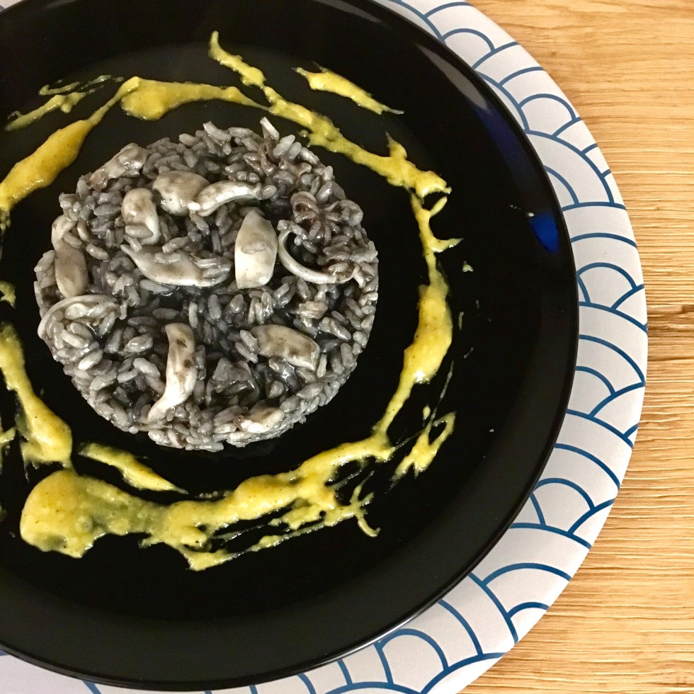 Risotto al Nero di Seppia con Seppioline e Crema al Curry
